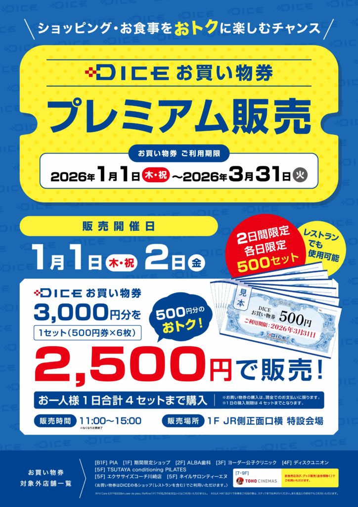 2026年1月1日~1月2日の2日間ダイスお買い物券プレミアム販売を開催します!